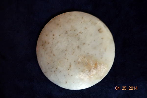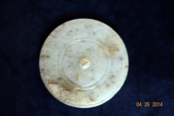 G35 年代: 戰國時代 品名: 玉鏡 玉料: 白玉 規格(寬×高×厚-公分): Ø 8.5×0.8