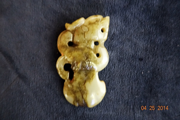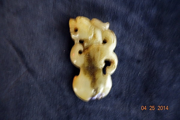 G48 年代: 戰國時代 品名: 獸首玉釜 玉料: 白玉 規格(寬×高×厚-公分): 3.5×6.5×1