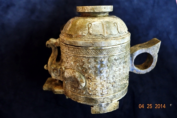 G50 年代: 戰國時代 品名: 玉觥 玉料: 青玉 規格(寬×高×厚-公分): 16×10×13