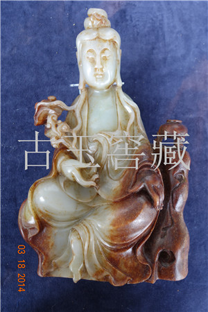 N1 年代:清代 品名:玉觀音 玉料: 和闐青白玉 規格(寬×高×厚-公分): 18×28×12