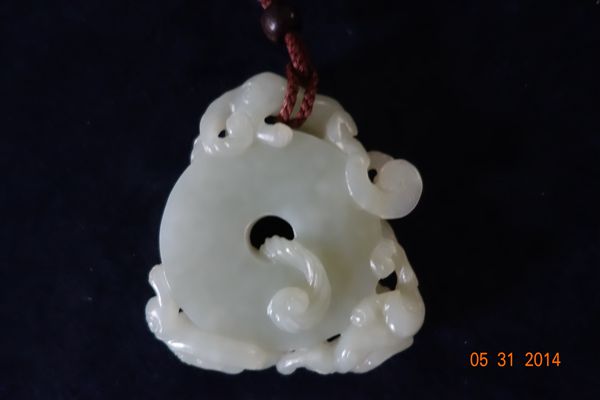 O-8 年代: 近代 品名: 三龍玉珮 玉料: 和闐青玉
